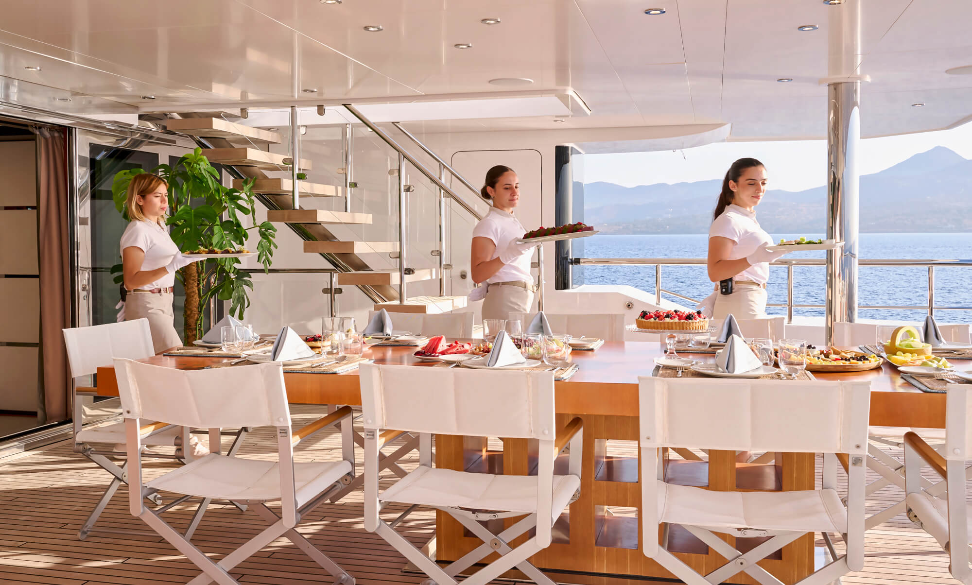 From the executive chef crafting exquisite meals tailored to your preferences, to the stewardesses delivering attentive and intuitive service, to the deck crew readying the water toys or setting up a private beach picnic — every member of the Persefoni crew is committed to creating magical moments, both on and off the water.